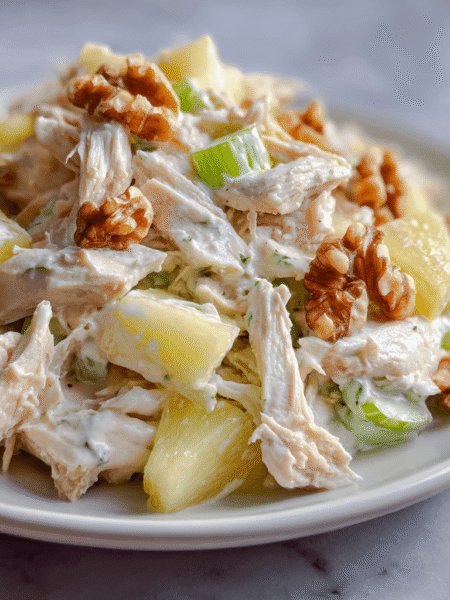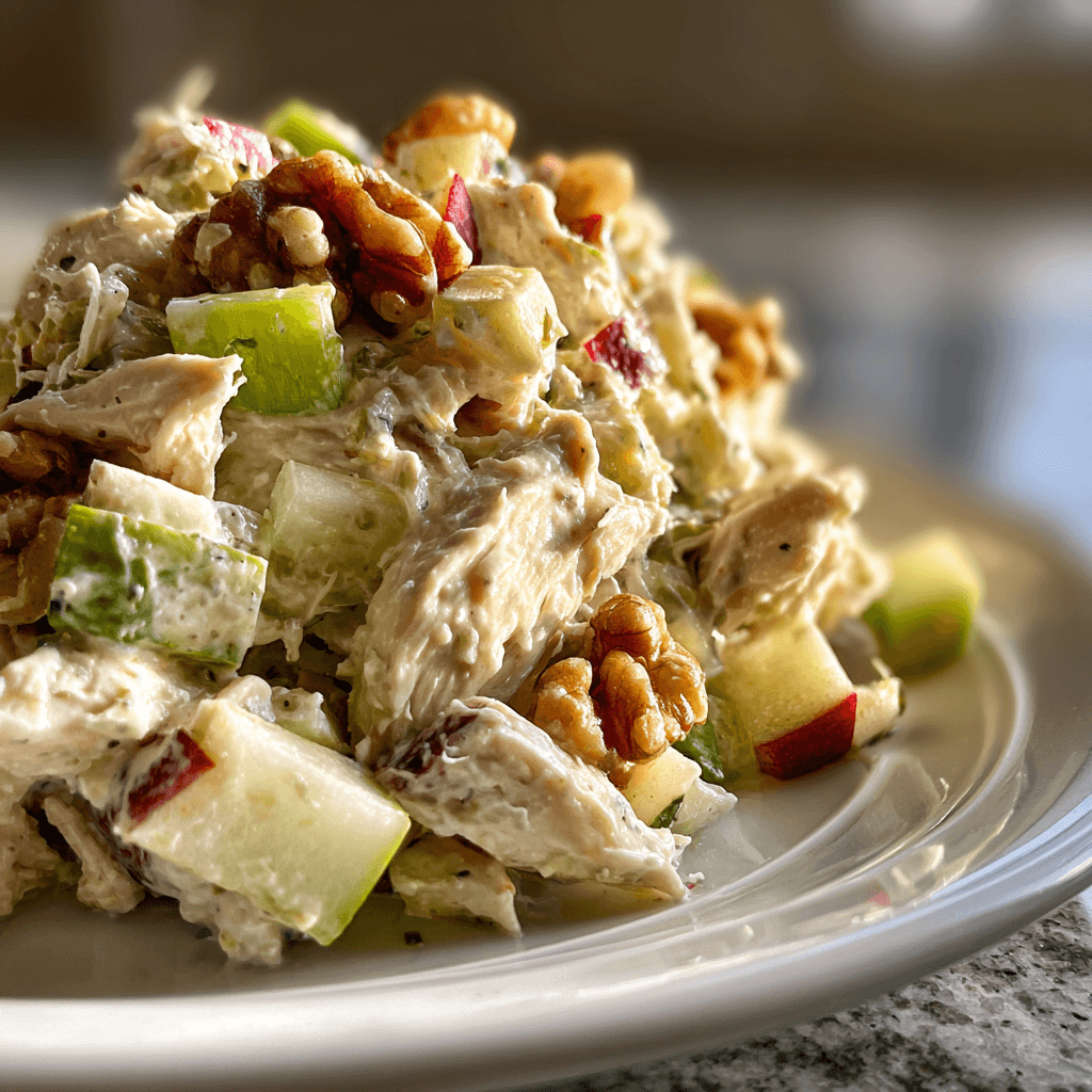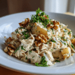 Apple chicken salad made with tender chicken, crisp apples, crunchy walnuts, and a creamy dressing. This fresh and lightly sweet recipe is perfect for lunch, meal prep, or a quick balanced meal.