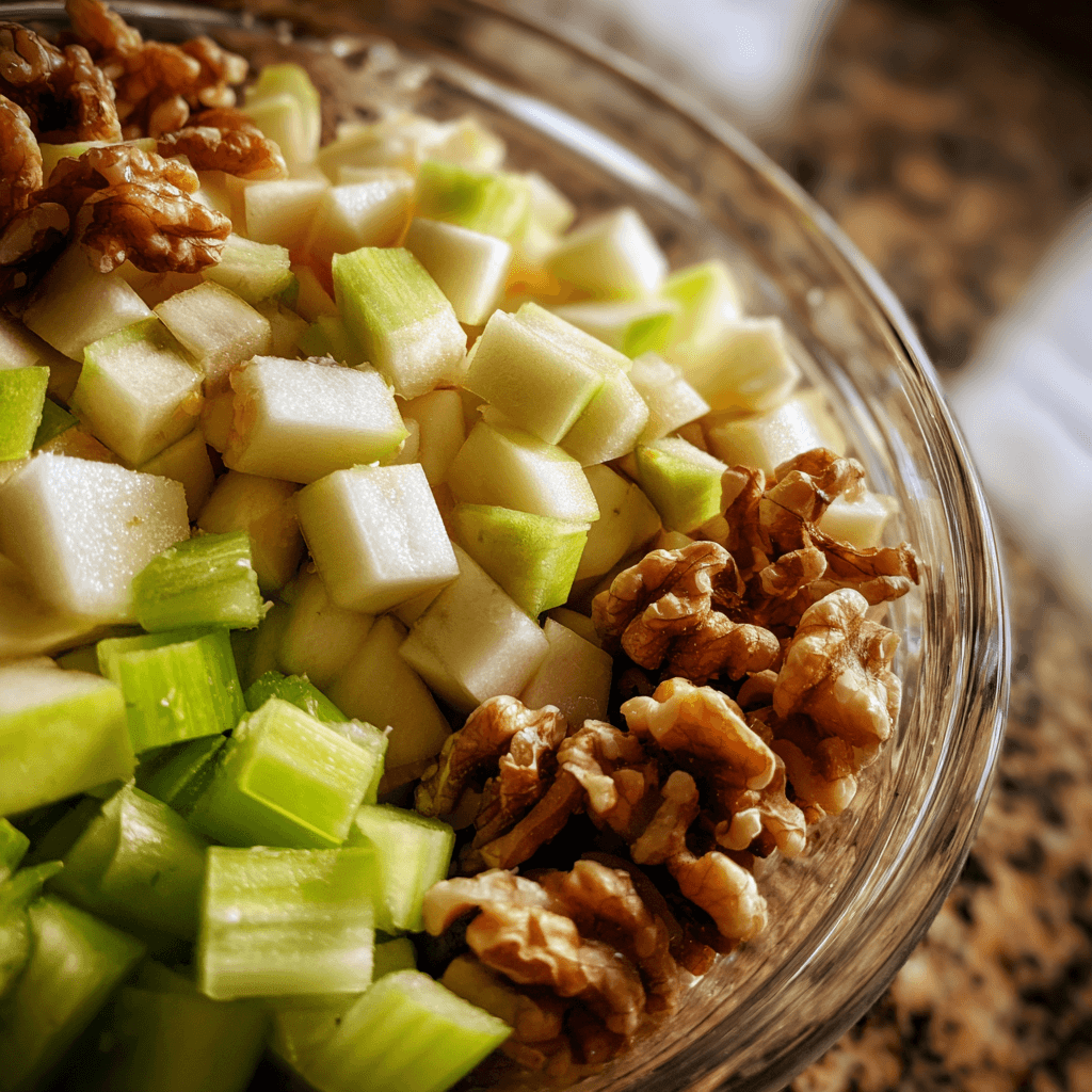 • Toast the walnuts lightly: A quick toast brings out their natural flavor and adds a deeper taste to the salad. Let them cool before mixing.