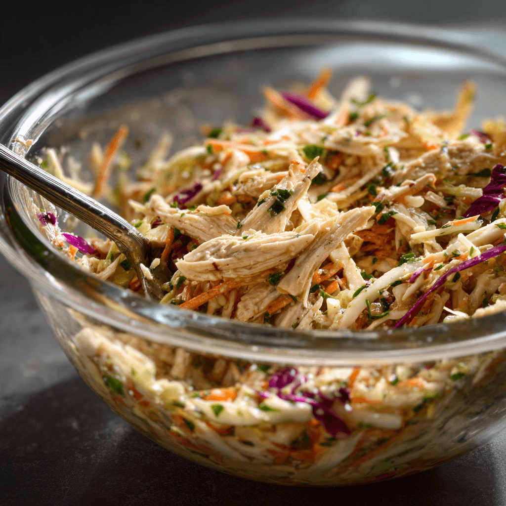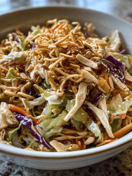 Some meals feel instantly refreshing the moment you take the first bite, and that’s exactly what happens here. This asian slaw chicken salad brings together tender chicken and a vibrant mix of crunchy cabbage and vegetables, all lightly coated in a flavorful dressing that ties everything together without weighing it down.