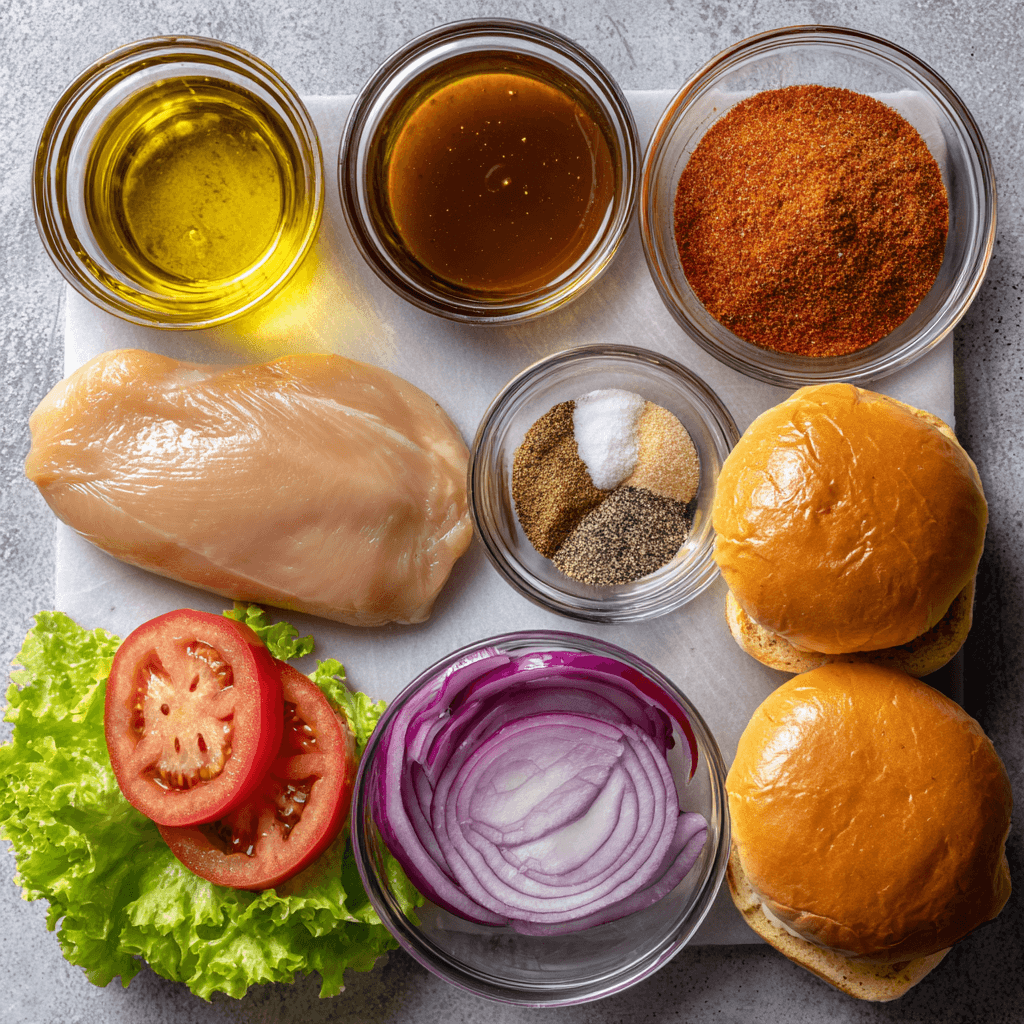 Ingredients for Buffalo Grilled Chicken Sandwich