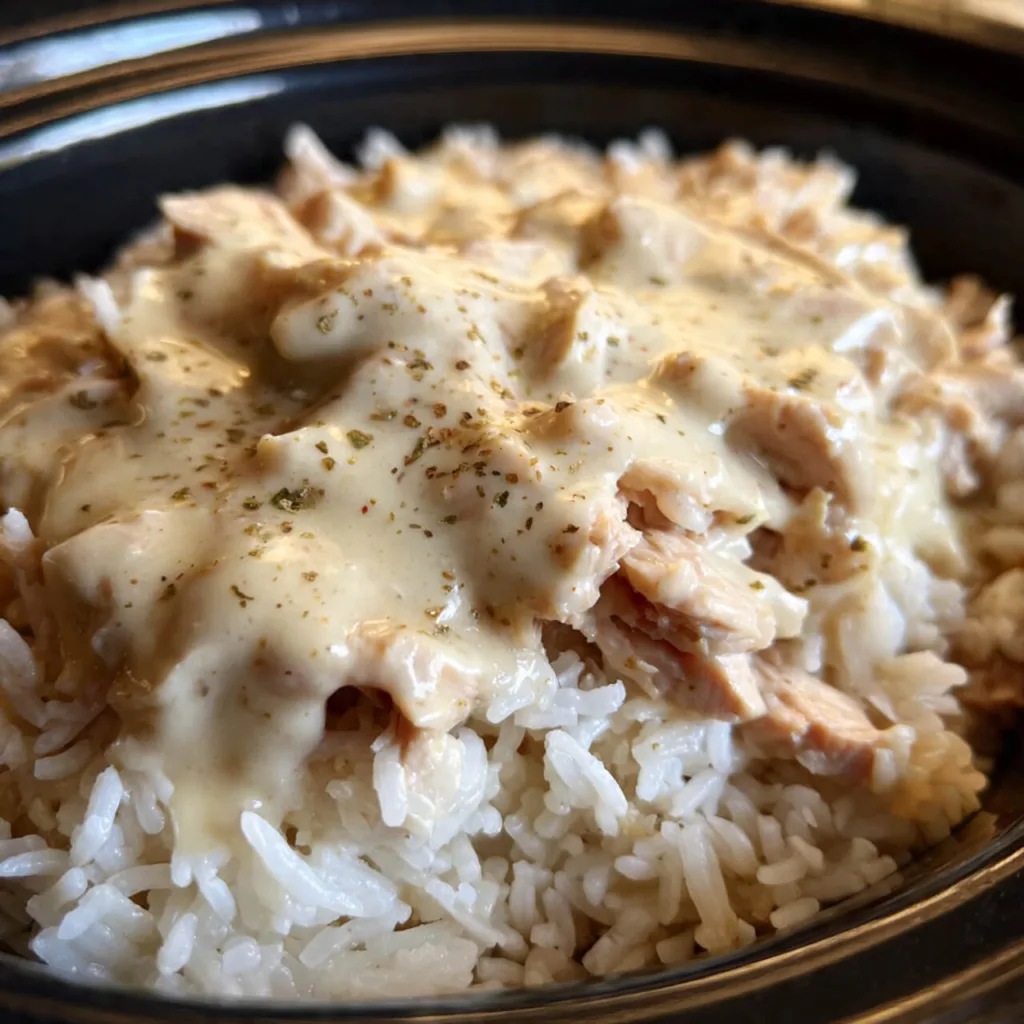 - Mix the creamy base: In a separate bowl, whisk together the cream of chicken soup and chicken broth. Pour this mixture over the chicken and rice in the slow cooker.