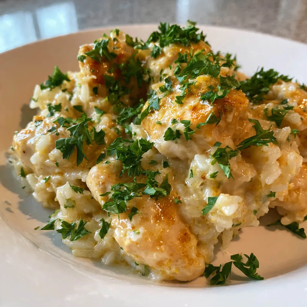 A hearty and creamy chicken rice winter casserole, baked to perfection with tender chicken, soft white rice, savory mushroom soup, and golden Parmesan. Perfect for cold nights, weeknight dinners, or cozy family gatherings.