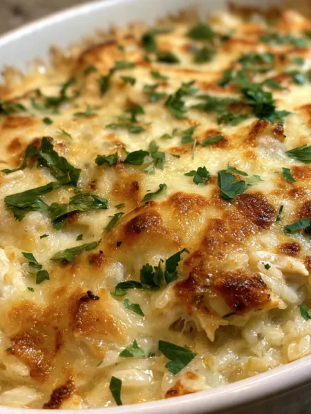 A hearty and creamy chicken rice winter casserole, baked to perfection with tender chicken, soft white rice, savory mushroom soup, and golden Parmesan. Perfect for cold nights, weeknight dinners, or cozy family gatherings.