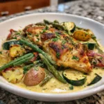 Dinner feels easier when everything cooks on one tray, and that’s exactly why creamy chicken sheet pan dinner has become a favorite in my kitchen. On busy evenings, I always reach for this creamy chicken sheet pan dinner because it delivers rich flavor with almost no effort. The first time I made this creamy chicken sheet pan dinner, it filled the kitchen with that warm garlic aroma that instantly made everyone hungry.