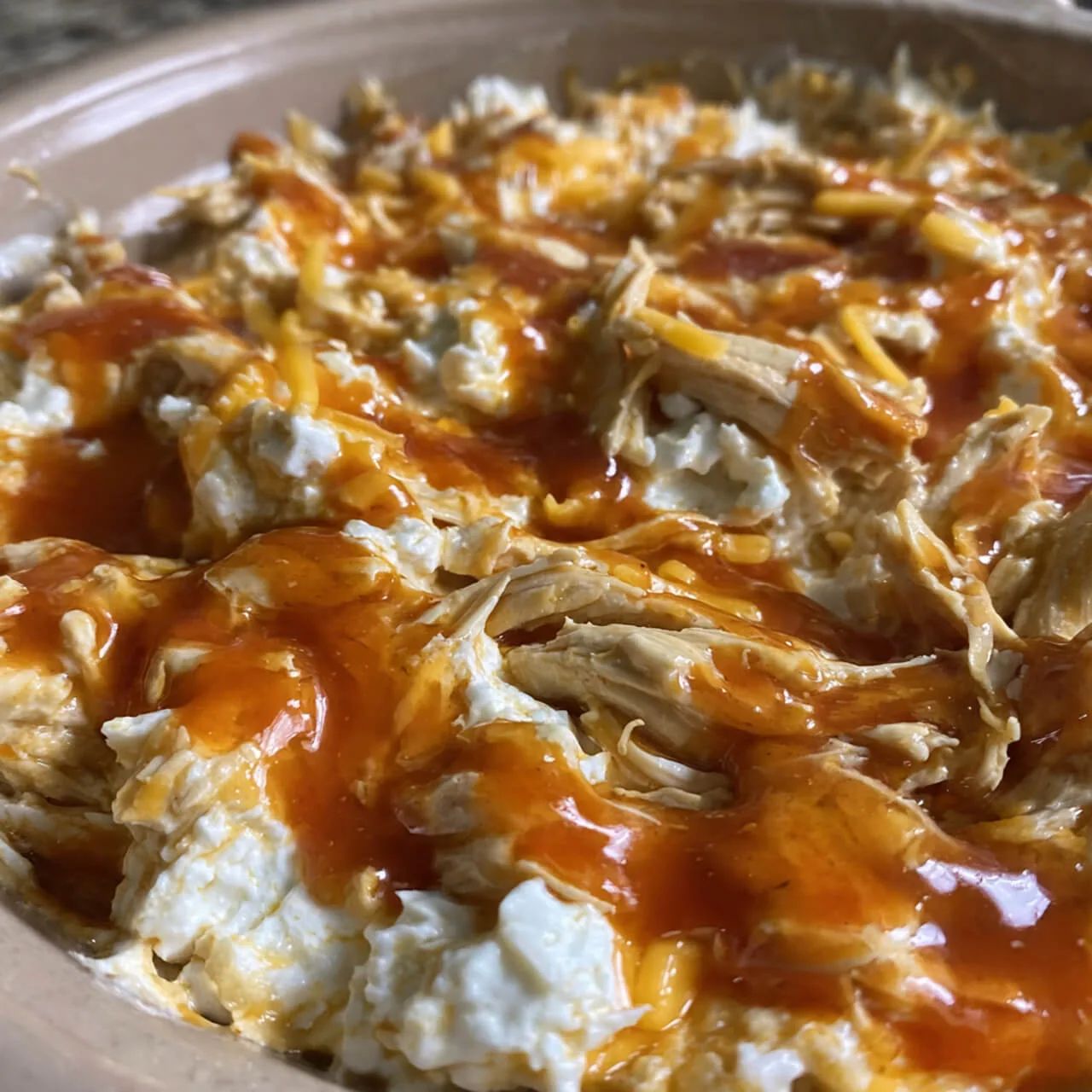 This dip actually came into my rotation by pure accident. I had friends coming over, barely any time to cook, and a pantry that looked like it had been raided. I found a can of chicken, some leftover ranch seasoning, and a bottle of buffalo sauce.