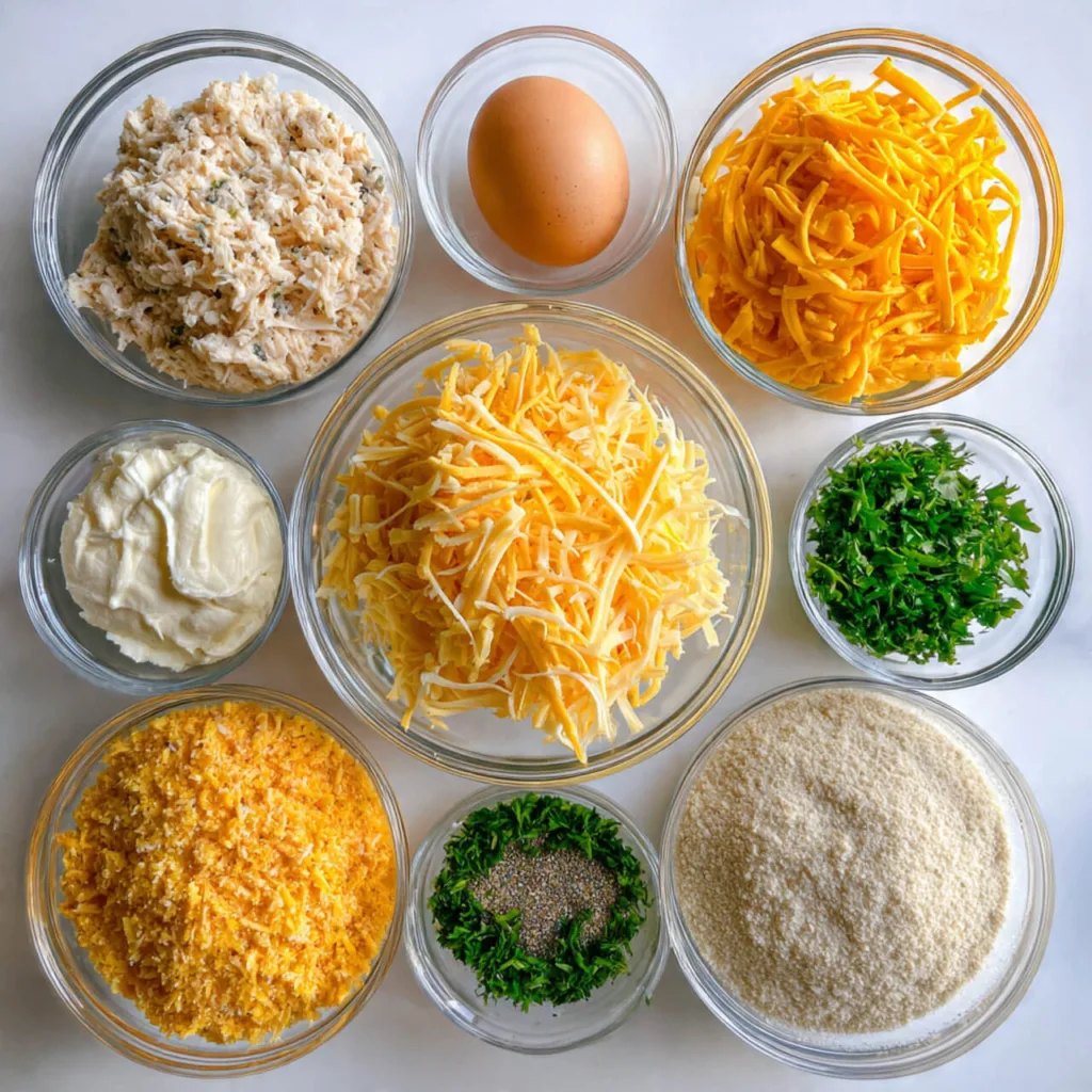 1. In a large bowl, combine ground chicken, cheese, ranch mix, mayo, egg, breadcrumbs, parsley, salt, and pepper. Mix just until combined.