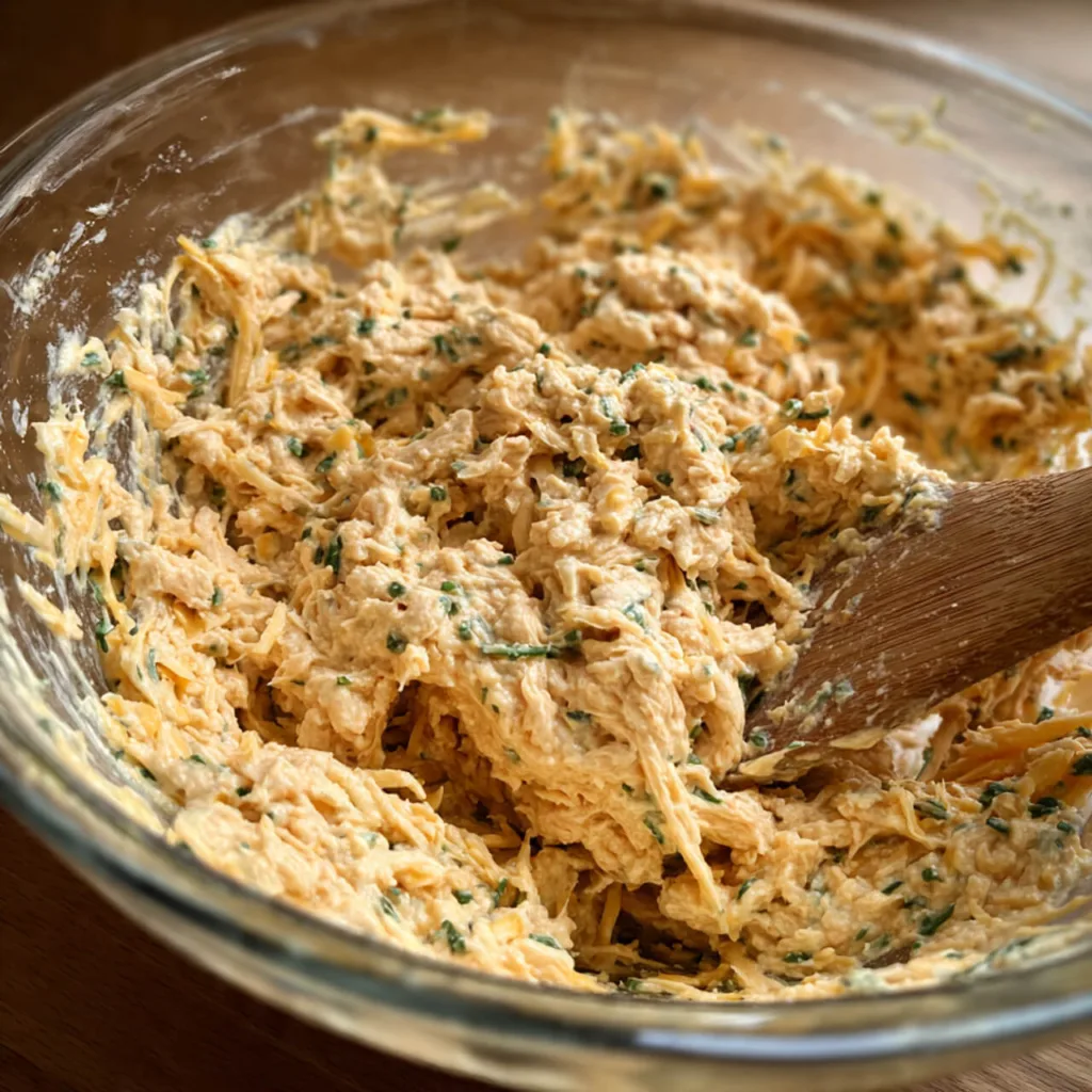 In a large bowl, combine the ground chicken, shredded cheddar cheese, ranch seasoning mix, mayonnaise, egg, breadcrumbs, salt, pepper, and parsley. Mix gently with your hands or a spoon until evenly combined.