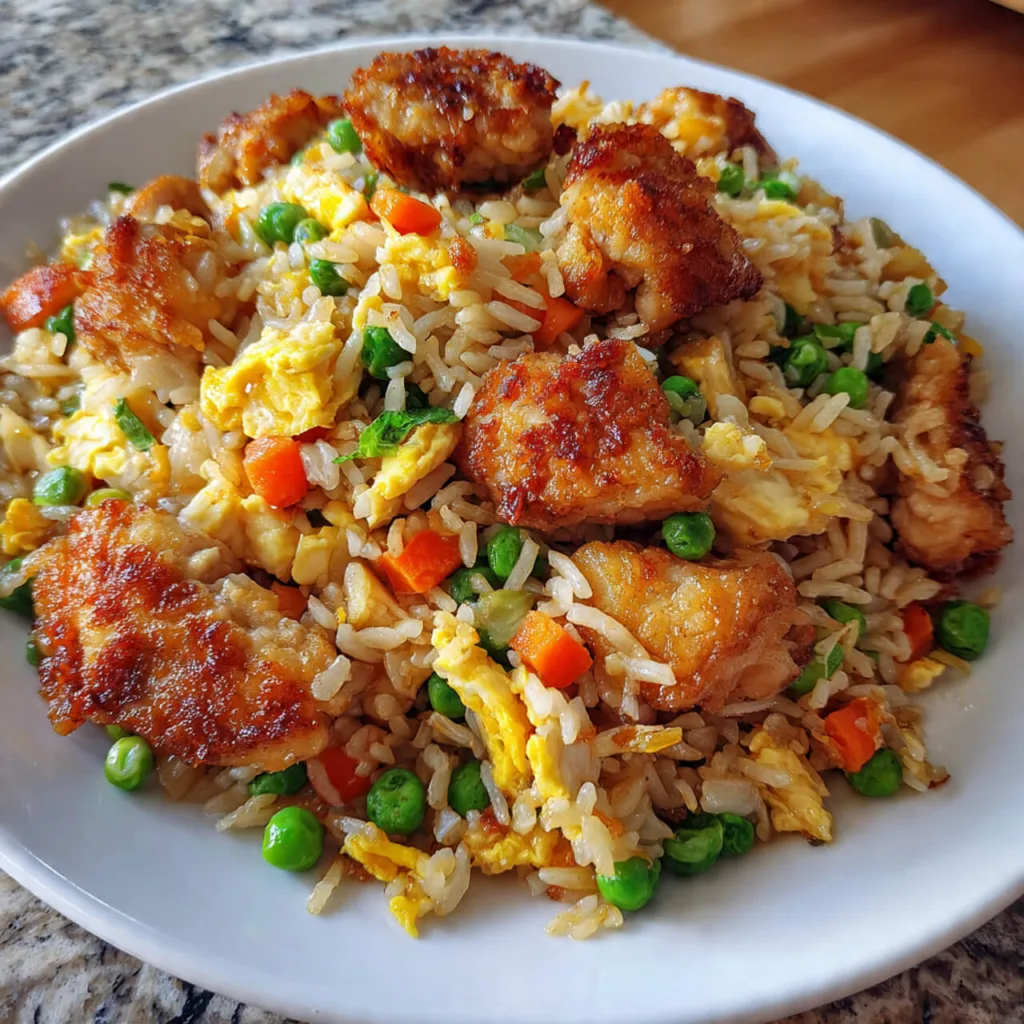 Use day-old rice for best results. For a spicier kick, drizzle with chili oil or sriracha before serving. Swap chicken with shrimp or tofu for variations.