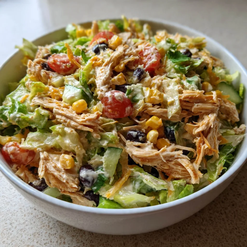 Another reason people enjoy this Southwest Fiesta Chicken Salad is the flavor balance. The creamy dressing blends with the spices and vegetables, creating a bold yet refreshing bite.