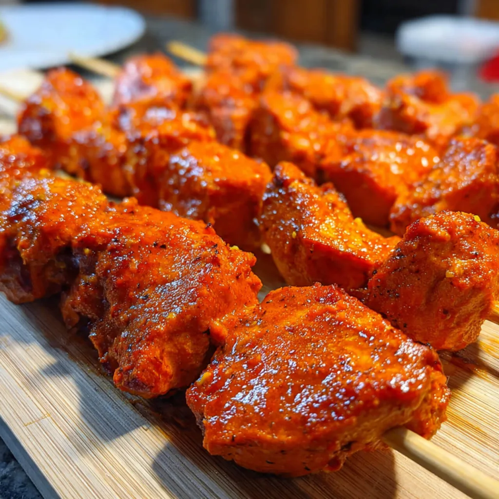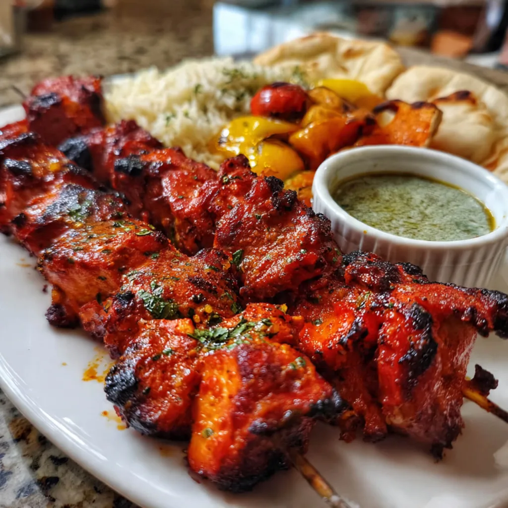 Grilled tandoori chicken skewers marinated in yogurt and spices, then grilled to perfection. A bold, juicy dinner with Indian flavor.