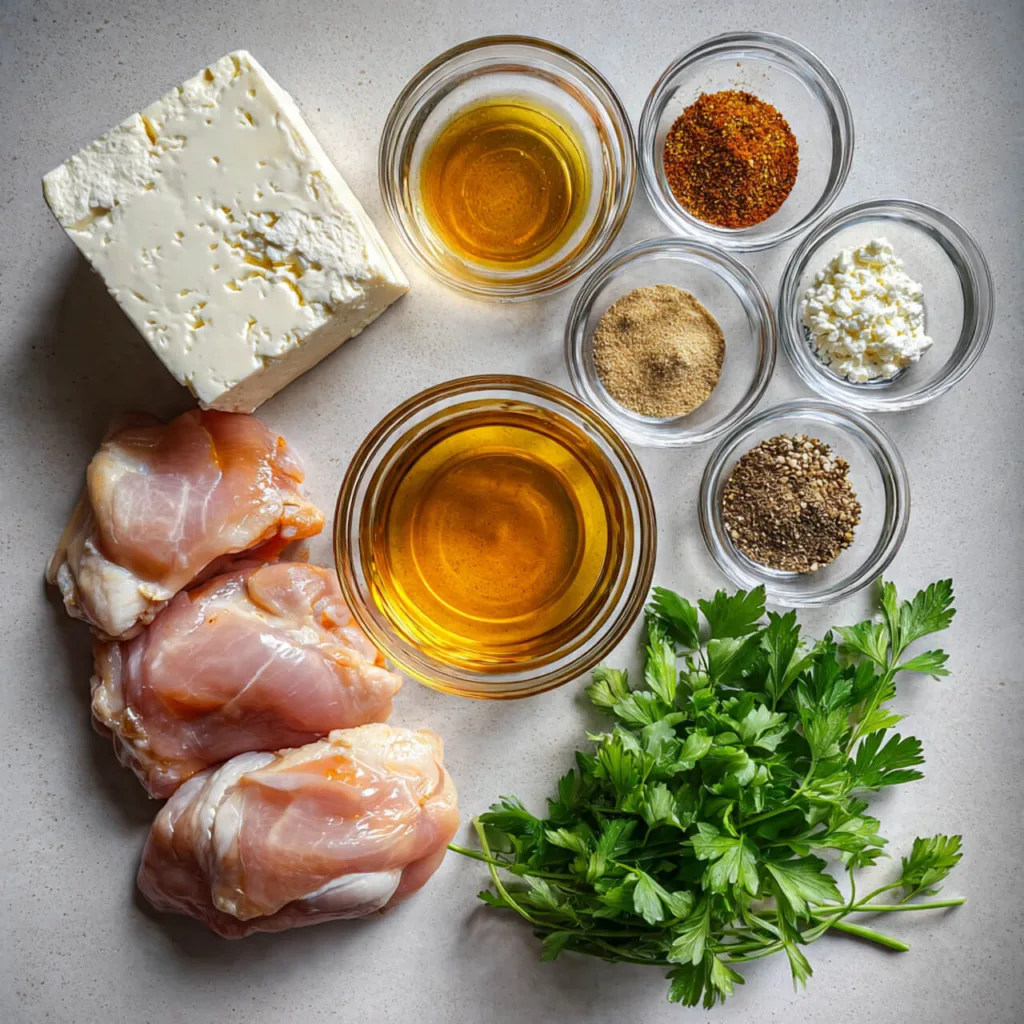 Ingredients for Hot Honey Feta Chicken Thighs