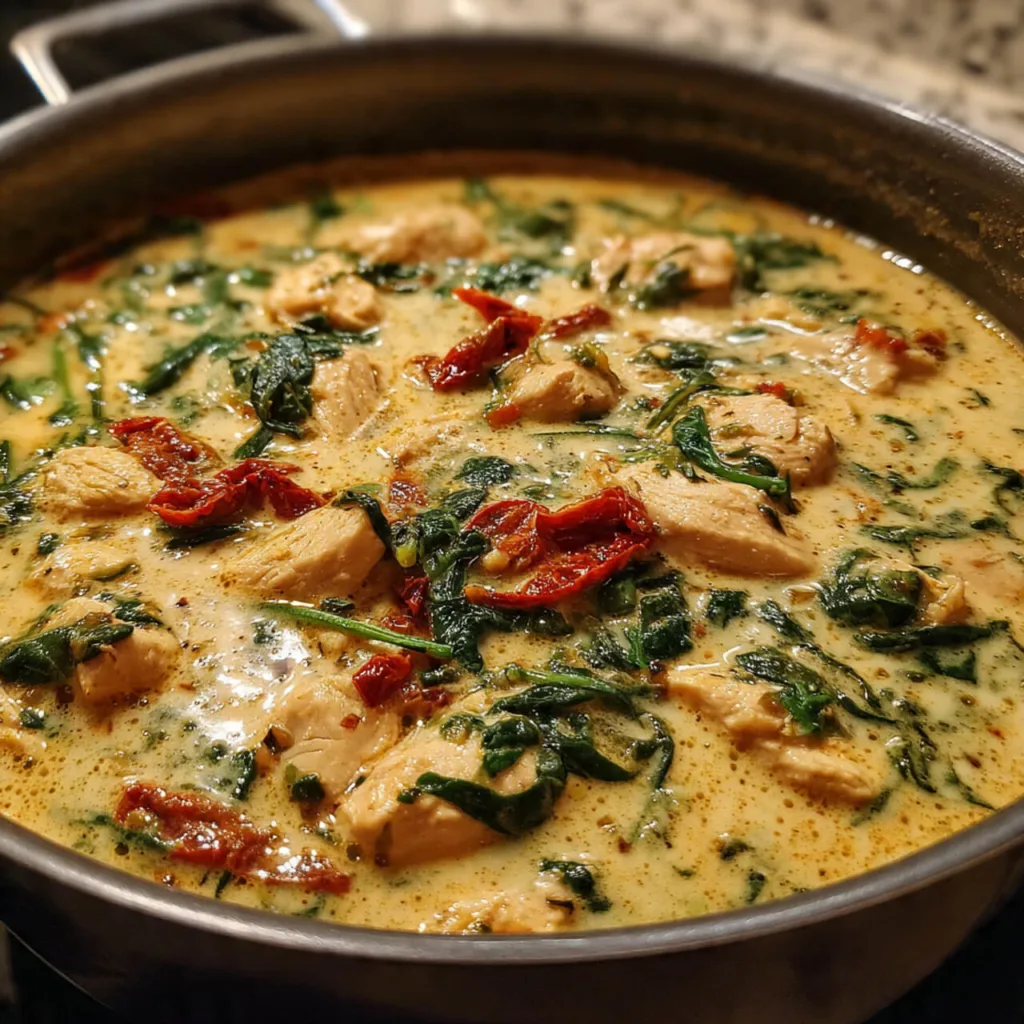 It’s a creamy soup dinner made with diced chicken, spinach, cream, Parmesan, and sun-dried tomatoes. The name comes from how rich and comforting the dish is, delicious enough to impress anyone.