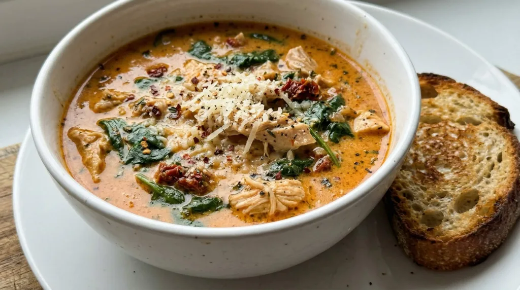 This creamy Marry Me Chicken with Spinach soup is the perfect cozy dinner. Loaded with juicy chicken, sun-dried tomatoes, and a cheesy, garlicky base — it’s ready in under 40 minutes and made in one pot.