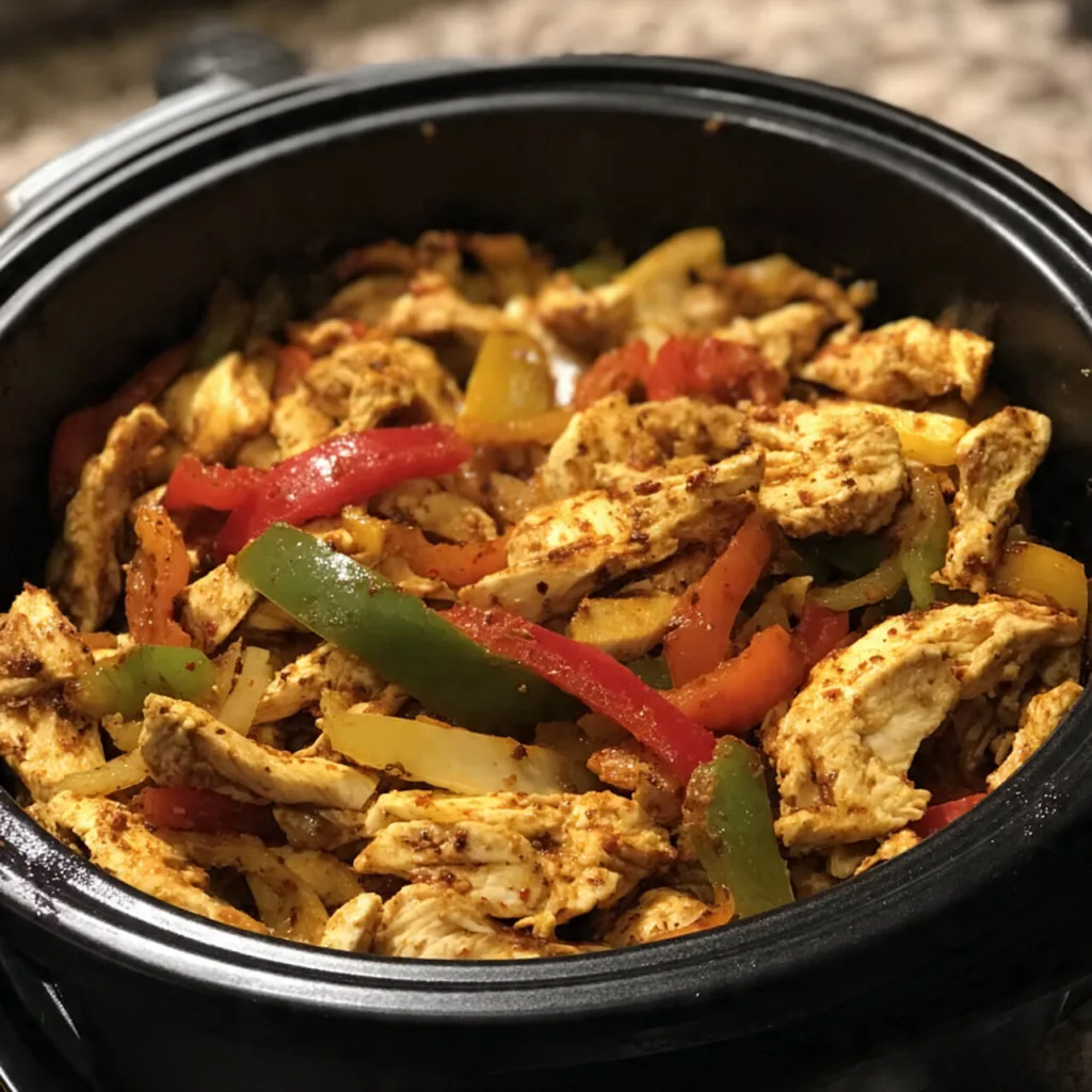A mix of chili powder, cumin, garlic powder, smoked paprika, and lime juice gives bold fajita flavor. Don’t skip the oil—it helps the spices coat the chicken and vegetables evenly.