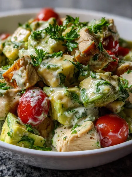 This savory chicken salad works beautifully inside a soft tortilla because the wrap holds the creamy mixture without falling apart. The ranch dressing softens the heat from chipotle while lime juice adds brightness. Crisp celery and red onion create contrast against the tender chicken. Every bite feels layered and satisfying.