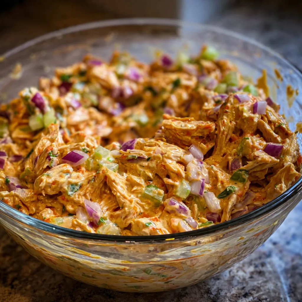 If you want lower carb spicy chicken salad ideas, spoon the filling into lettuce cups instead of tortillas. The crisp lettuce holds the creamy mixture while keeping it light. However you serve it, this savory chicken salad adapts easily to your table.