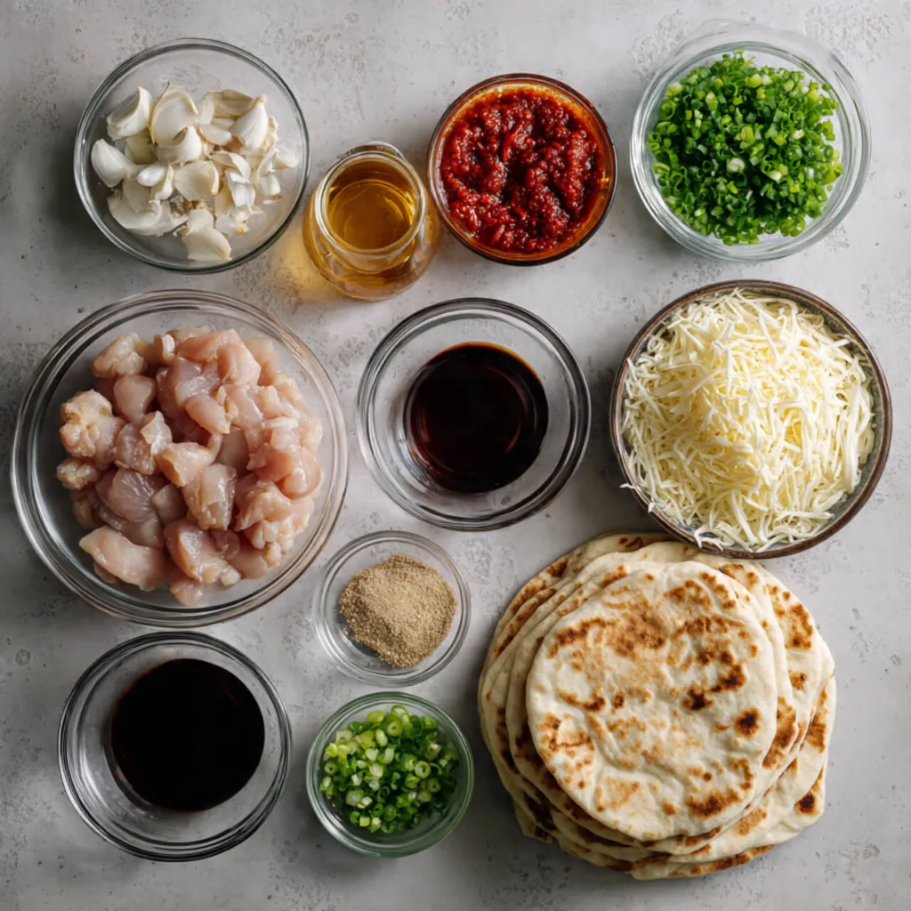 Ingredients for Spicy Honey Garlic Chicken Flatbreads