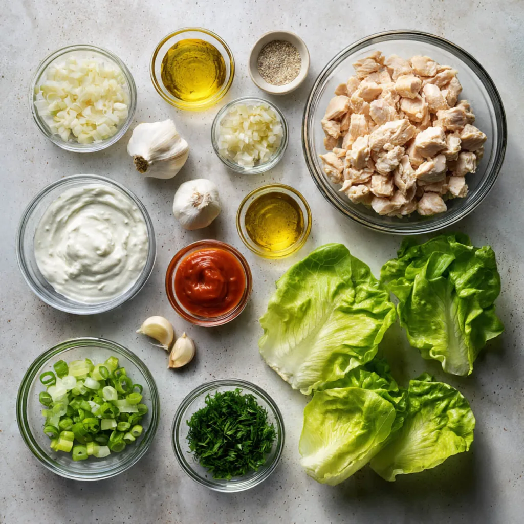 Ingredients for Spicy Ranch Chicken Lettuce Wraps