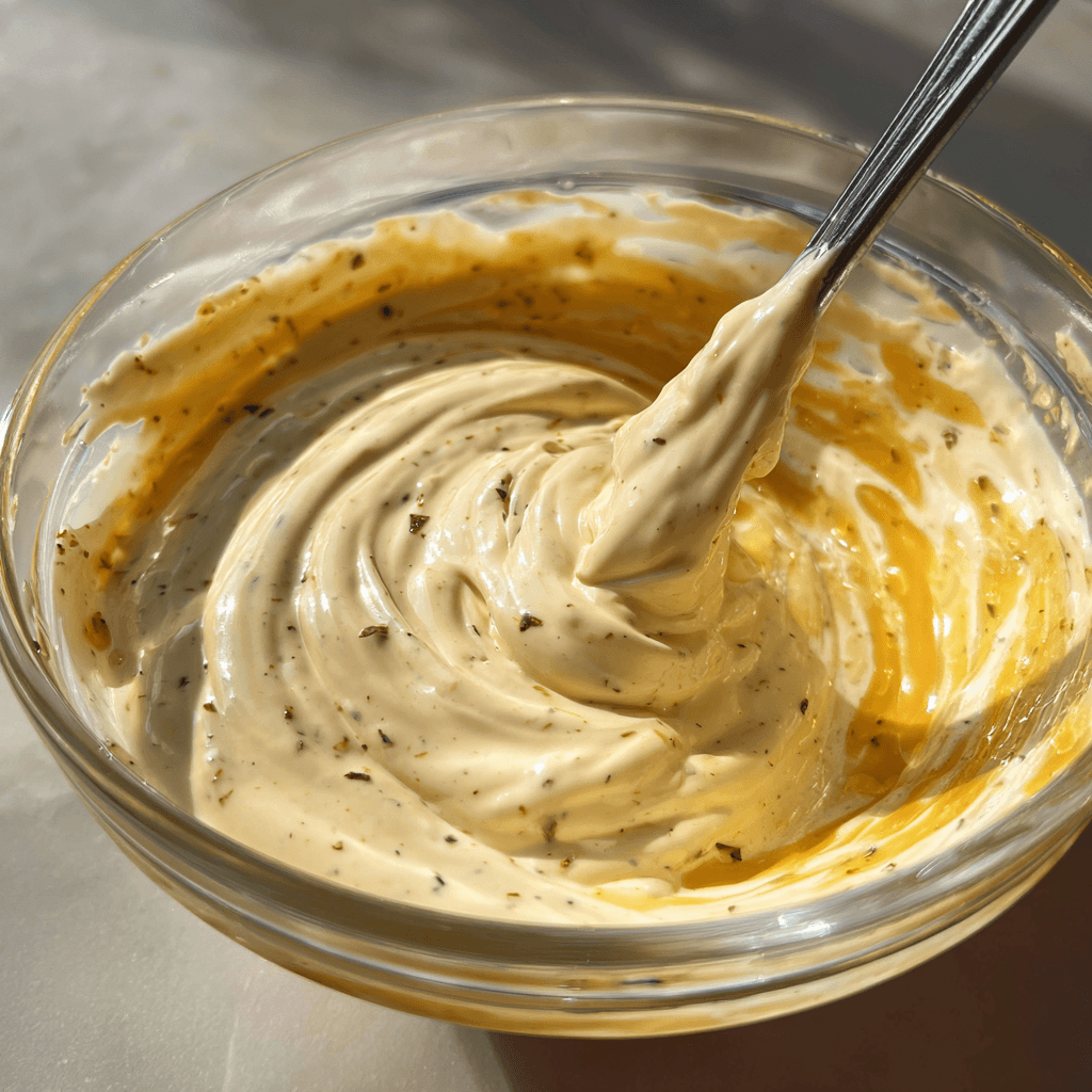 3. In a large mixing bowl, add Greek yogurt, olive oil, lemon juice, garlic powder, oregano, salt, and black pepper. Stir continuously for about 1 to 2 minutes until the mixture becomes smooth, creamy, and fully combined with no visible lumps.