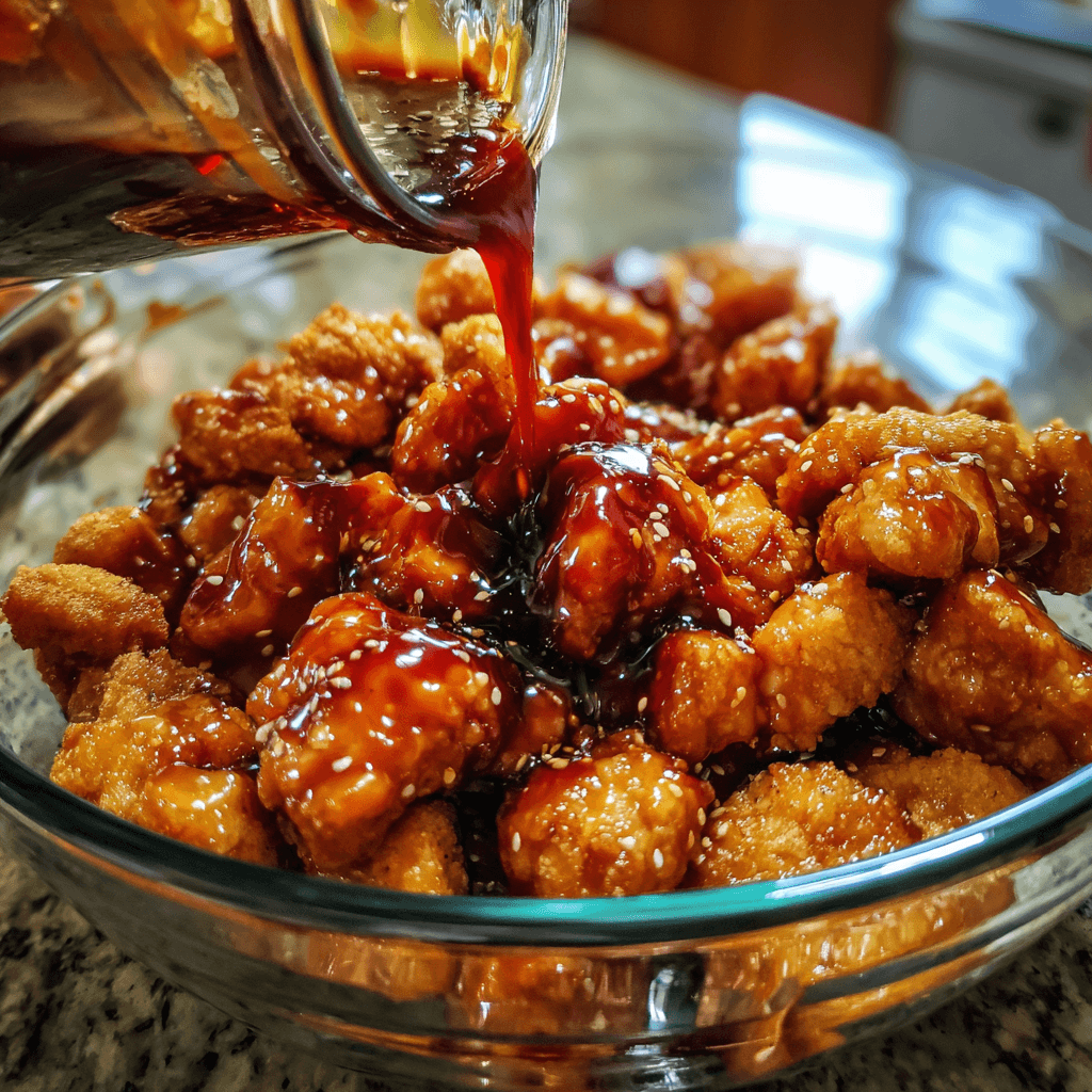 • Coat chicken evenly: Mix gently to ensure every piece gets a light, even glaze without excess pooling at the bottom.