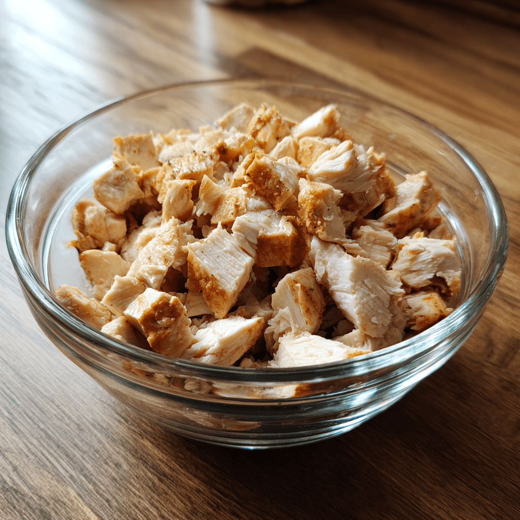 Cut the chicken into small, even pieces. This helps everything mix evenly and keeps the texture consistent.