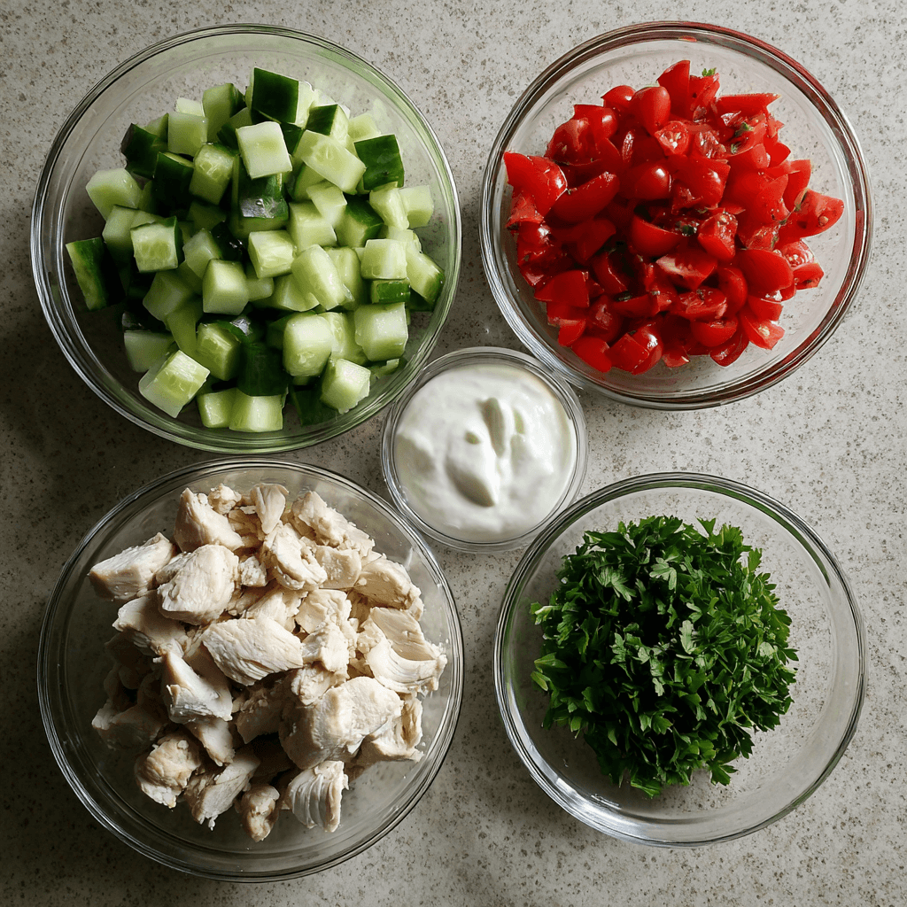 A light and refreshing tomato cucumber chicken salad made with tender chicken, crisp vegetables, and a creamy lemon herb dressing. Perfect for warm days and quick meals.